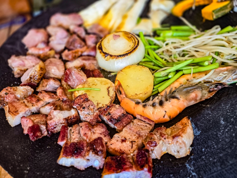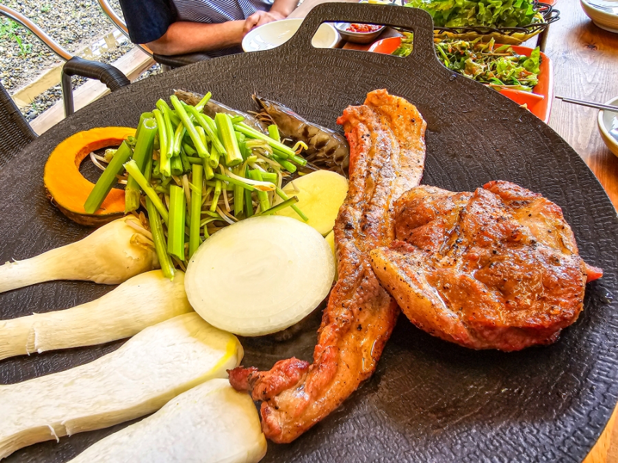 바비큐로 되어 있는 고기라 잠깐만 익히면 돼서 빠르게 식사 시작을 할 수 있었어요.