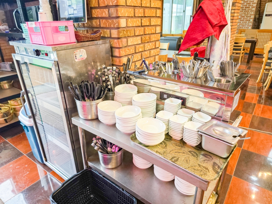 세팅도 반찬 세팅, 반찬 세팅, 그릇, 숟가락 모든 것들이 다 셀프로 운영 중이었어요.
